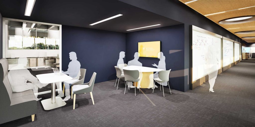 - The building also will house study spaces and a lounge for students and faculty, as well as faculty office spaces. Flex spaces can be used for advisory board and faculty meetings.