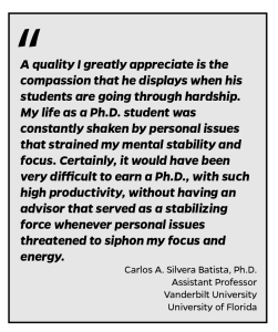 Although Ziegler acknowledges that each student may require a slightly different style of mentorship, he follows some basic tenets starting with establishing a holistic learning experience for them depending on their long-term goals. For example, if their goal is an academic position, he has them focus on hypothesis-driven research with an emphasis on writing proposals and allowing them time to teach in the classroom. Whereas a student who wants to focus on industrial work may need